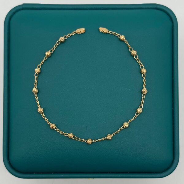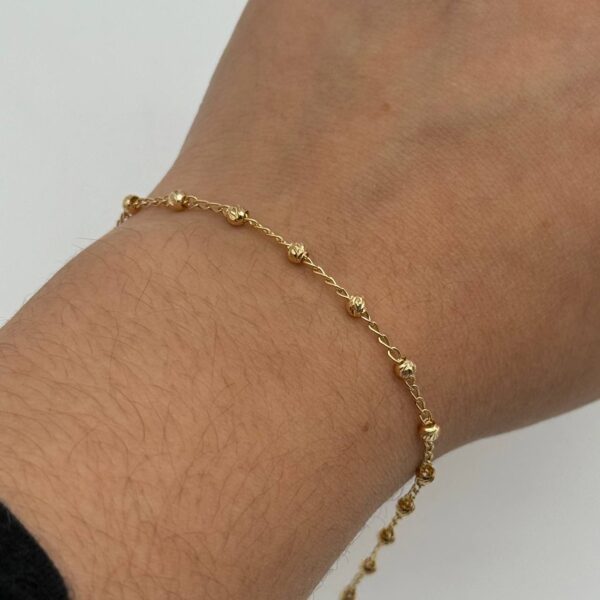 Pulso Tipo Militar 1.9gr / 17.5cm / Bolas Diamantadas 3mm Oro Amarillo 18k